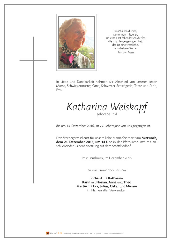 Friedhof Imst, † 13.12.2016 (76 Jahre)