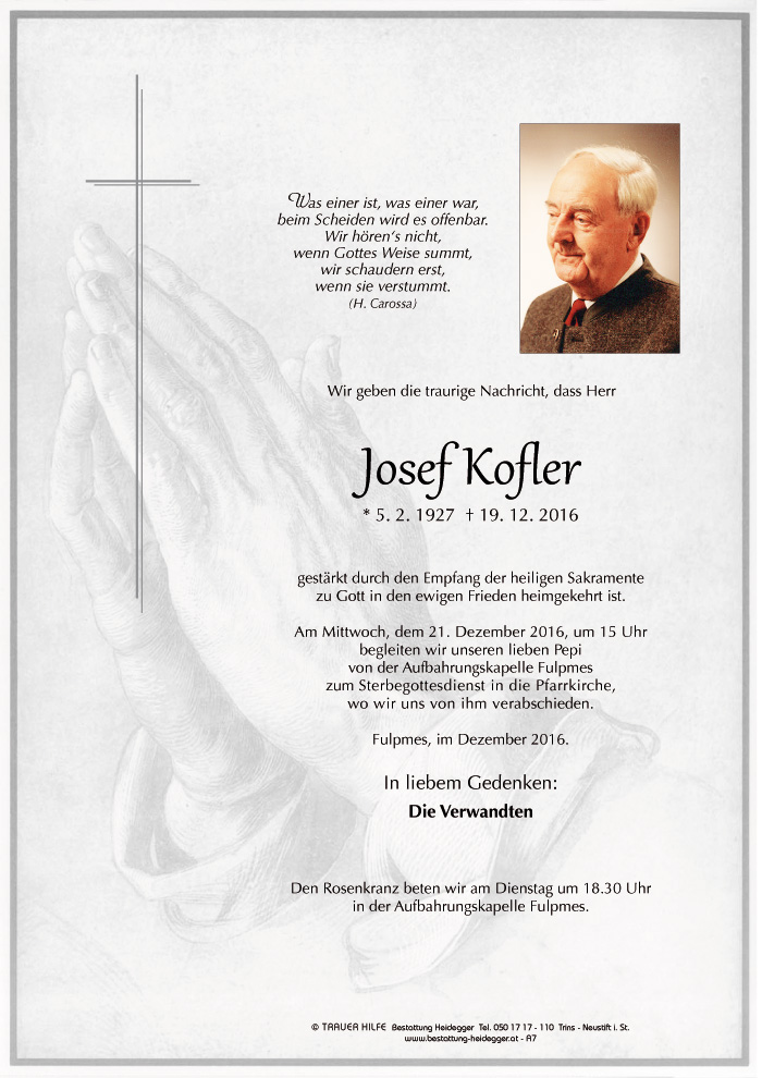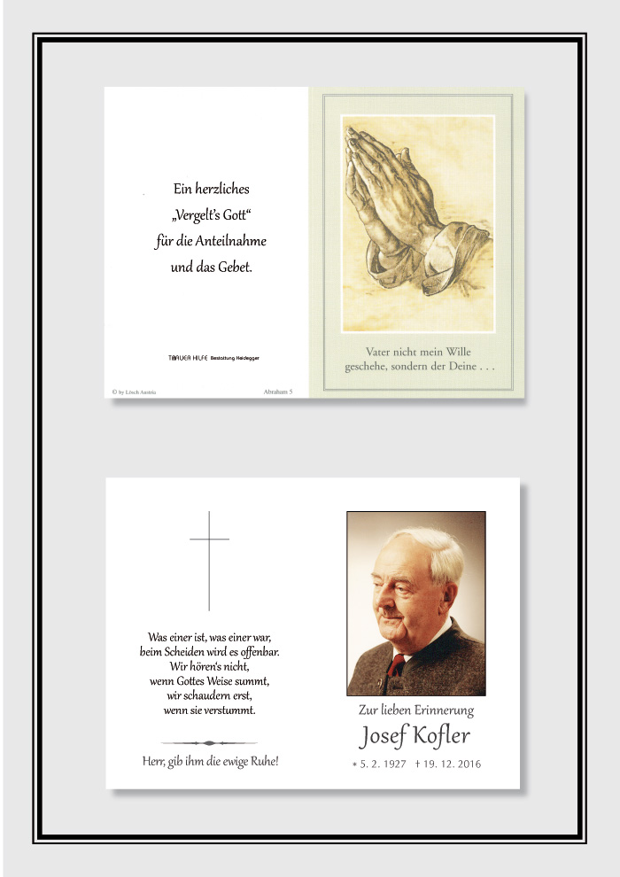 Bestattung wurde durchgeführt von: Karl Neurauter Karl Neurauter Bestattung Heidegger Brennerstraße 69 6150 - Steinach am Brenner Tel.: 05275 5211 zum Bestatter