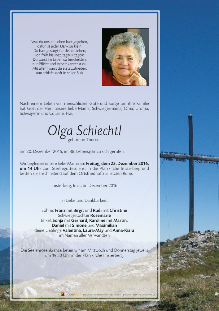 Aufrichtiges Beileid aus Imst21.12.2016 11:43 - Helmuth u. Elisabeth Walch