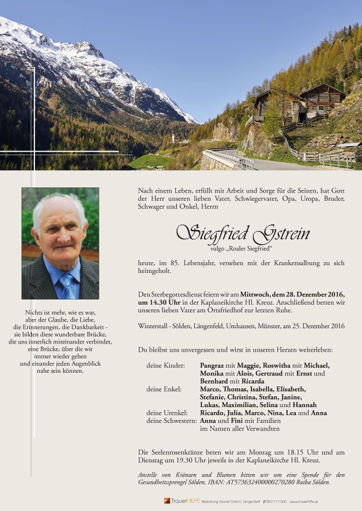 Lieber Bernhard mit Familie wir wünschen euch Trost und Kraft ,damit sich eure Trauer und euer Schmerz um eure Vater , Opa und Schwiegervater bald in liebevolle, dankbare Erinnerung wandelt.