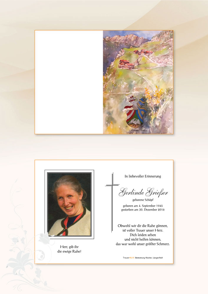 Aufrichtige Anteilnahme am Tode Eurer lieben Gerlinde entbieten Familie Scharfetter,