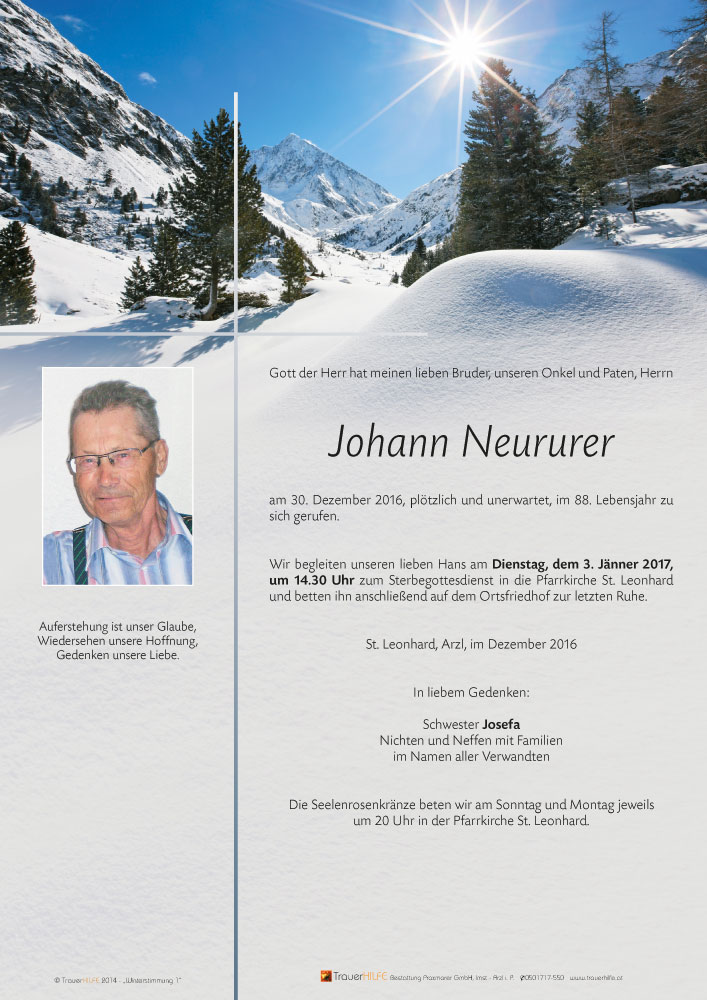 Friedhof St. Leonhard im Pitztal, † 30.12.2016 (87 Jahre)