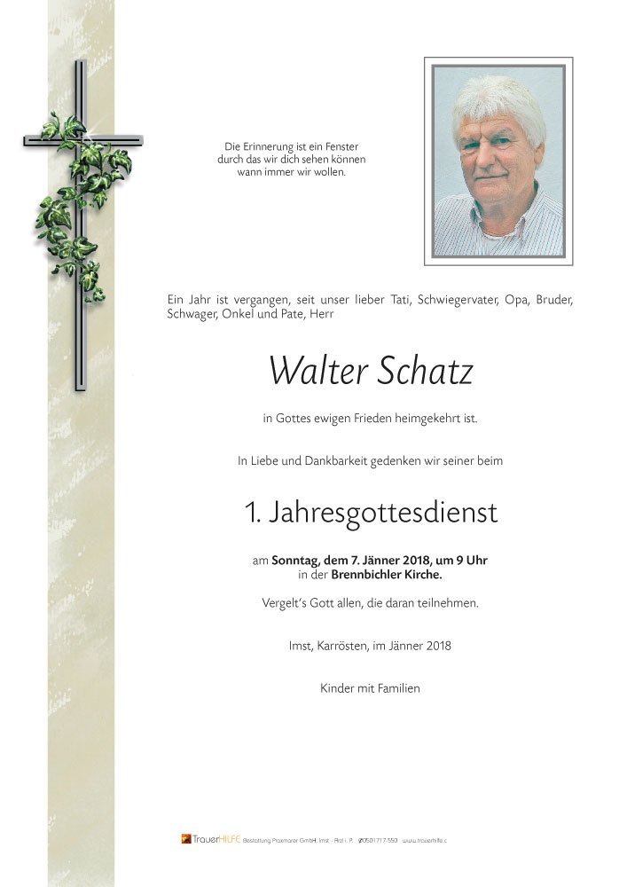 Walter war mein Geselle, so unvergessen bleibt er mir, wie er war.12.01.2017 22:08 - Kurt Fiegl
