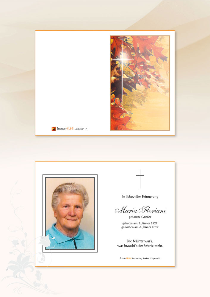 Mit großem Bedauern habe ich heute vom Tode eurer Mutter, Schwiegermutter und Oma erfahren.