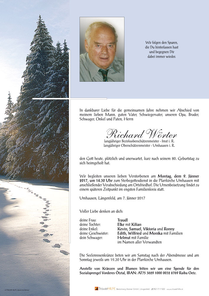 Die Schützengilde Umhausen ist ihrem Ehrenoberschützenmeister, Schützenkameraden und Freund, Richard, zu großem Dank und Anerkennung verpflichtet.