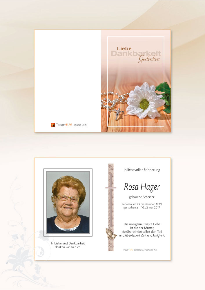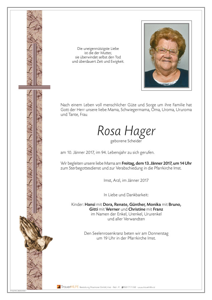 Unsere aufrichtige Anteilnahme am Heimgang eurer lieben Rosa.