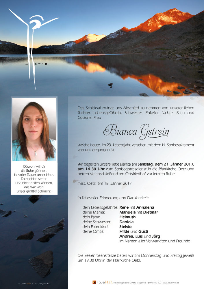 Mein tiefstes Beileid der Trauerfamilie. Möget ihr die Kraft finden, die ihr jetzt so notwendig braucht.20.01.2017 13:34 - Esther