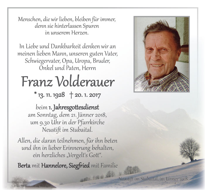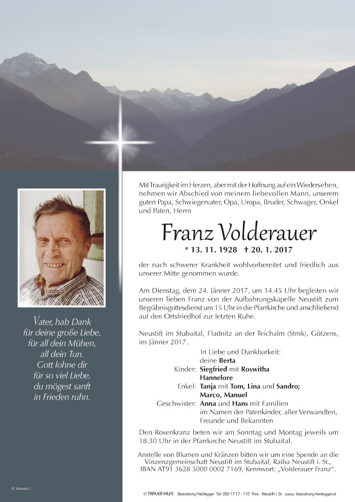Friedhof Neustift im Stubaital, † 20.01.2017 (88 Jahre)