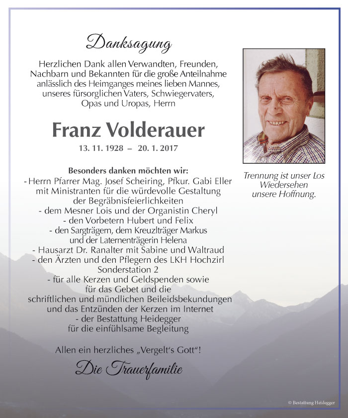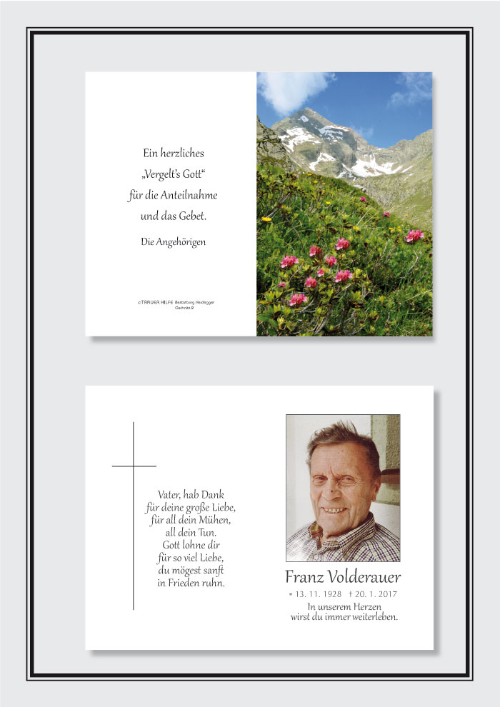 Bestattung wurde durchgeführt von: Karl Neurauter Karl Neurauter Bestattung Heidegger Brennerstraße 69 6150 - Steinach am Brenner Tel.: 05275 5211 zum Bestatter