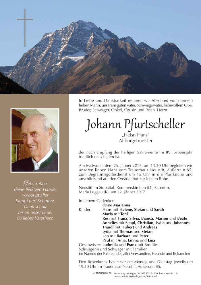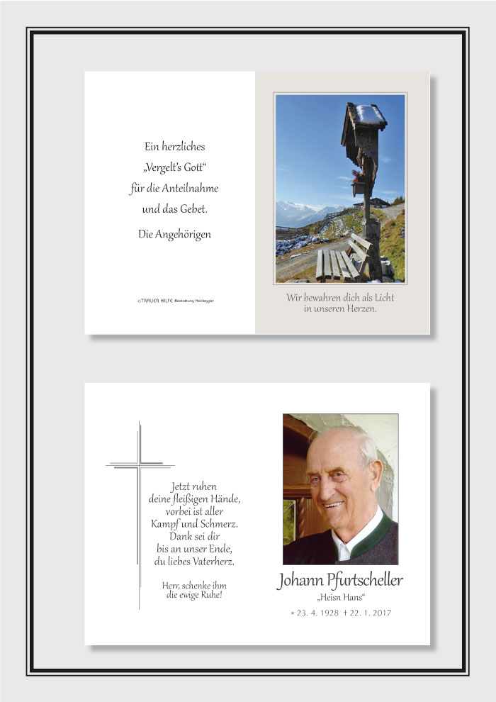 Neue Kerze für Johann Pfurtscheller entzünden.