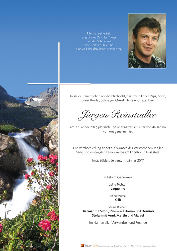 Wir wünschen euch viel Kraft in dieser schweren Zeit des Abschiedes. Jürgen ruhe in Frieden!30.01.2017 18:04 - Fam. Reinstadler Helene