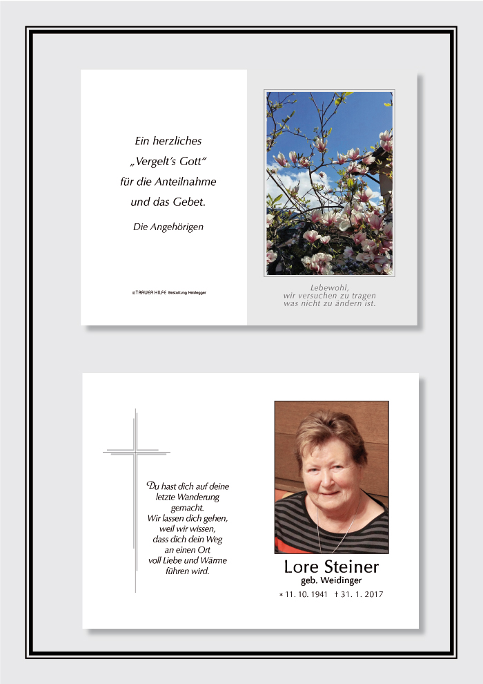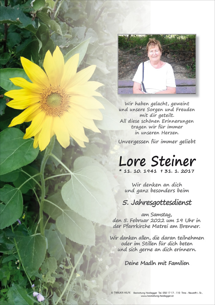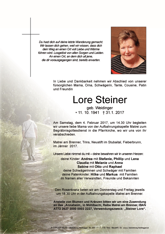 Tot ist nur, wer vergessen wird.01.02.2017 11:46 - Fam. Edith Maurer