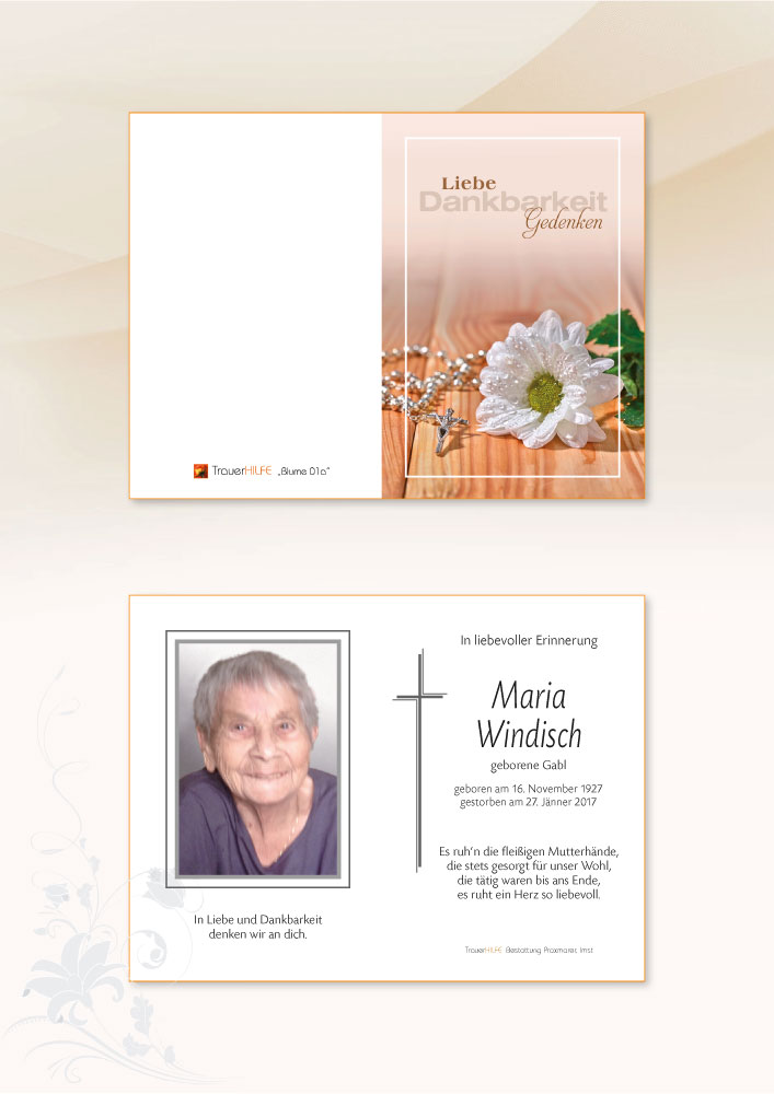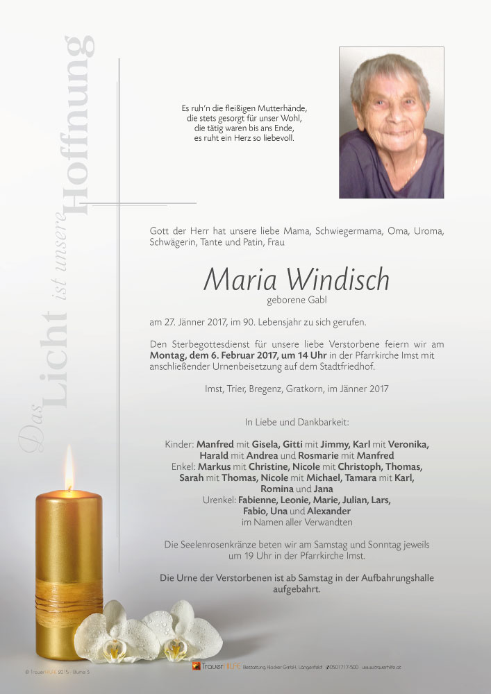 Zum Heimgang eurer lieben Mama und Oma möchten wir euch unser herzliches Beileid ausdrücken. Möge Gott sie mit seiner Liebe empfangen und ihr all das Gute, das Maria für ihre Lieben getan hat, im Himmel entgelten.