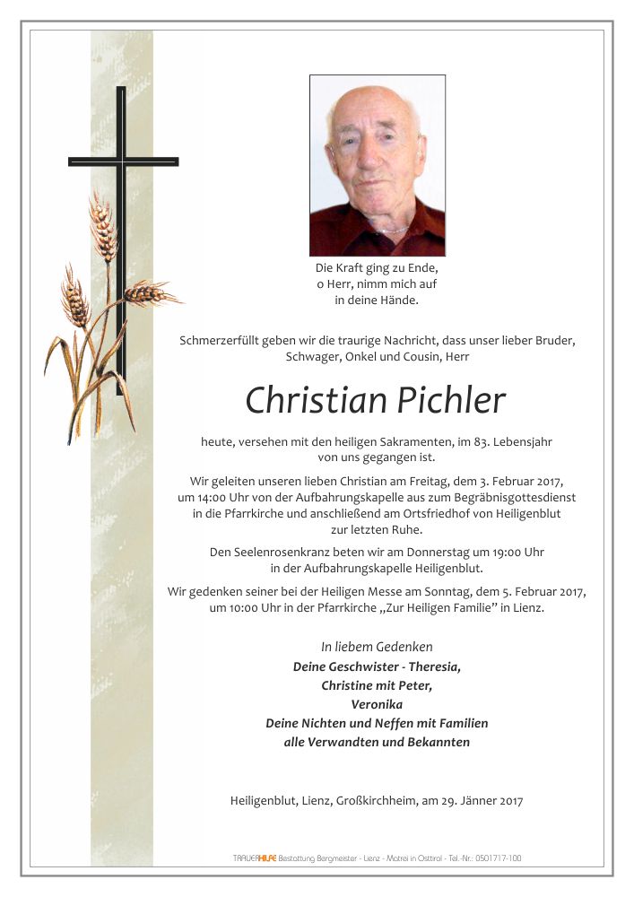 Liebe Geschwister und Verwandte von Herrn Pichler!