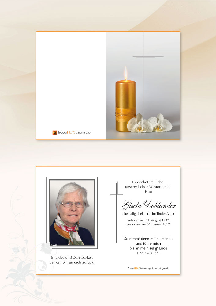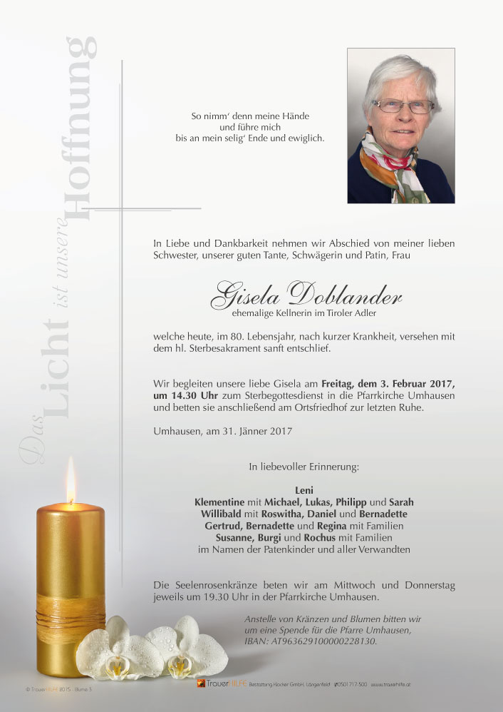 Neue Kerze für Gisela Doblander entzünden.