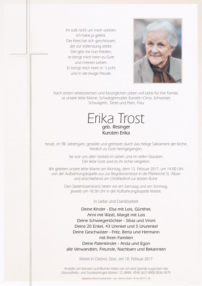 Erika, donkschien fa de vielen fein Gespräche, Momente und Begegnungen mit dir und hob a güete Reise hoam ze de deinigen auf der ondan Seite und schaug awe öacha auf uns.