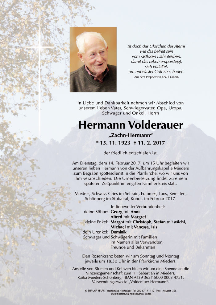 Friedhof Mieders, † 11.02.2017 (93 Jahre)