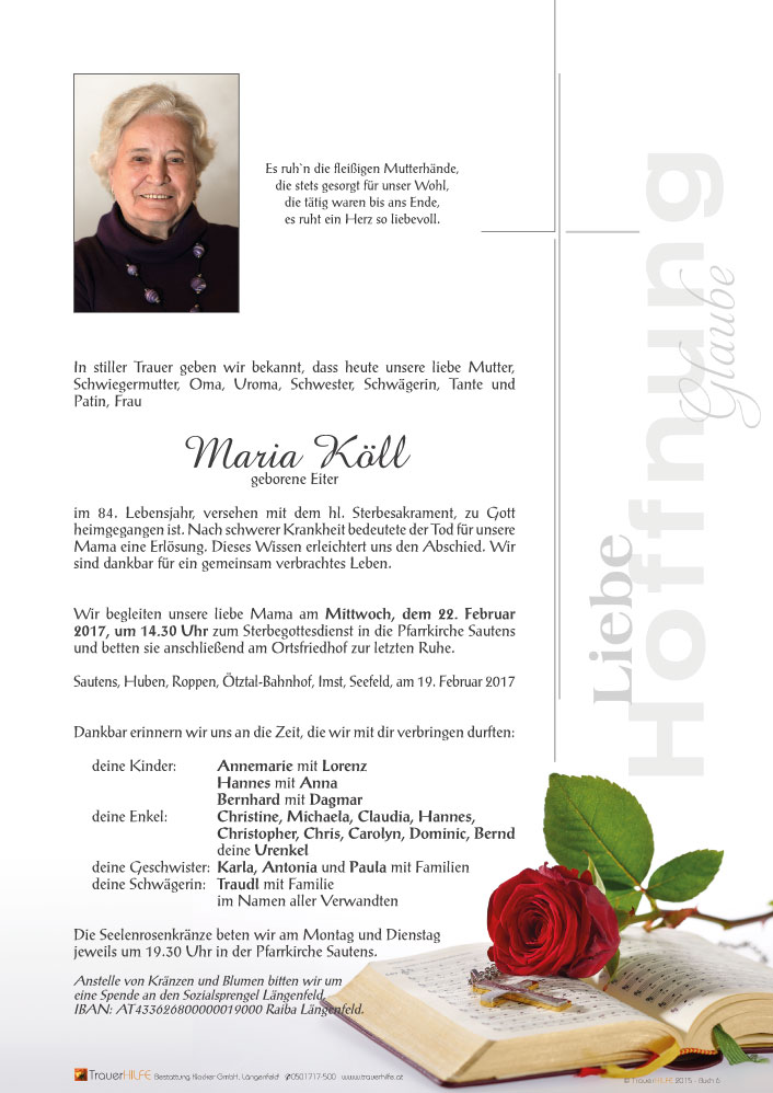 leider erst erfahren vom Heimgang deiner Mama, haben wir uns in Imst noch so nett unterhalten.