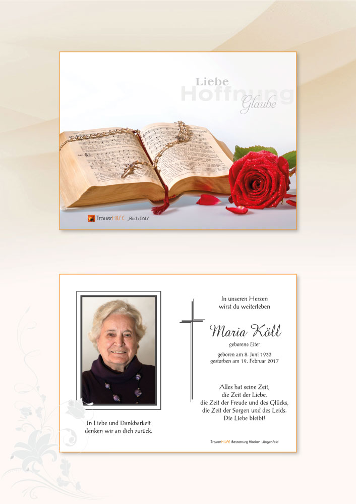 Du spürst es dann sie ist nicht weit Sie ging voraus in die Ewigkeit.