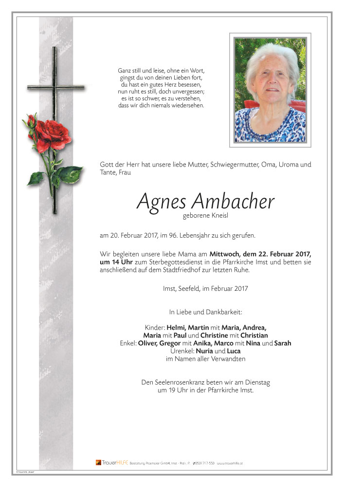 Wir werden Frau Ambacher stets in lieber Erinnerung behalten.