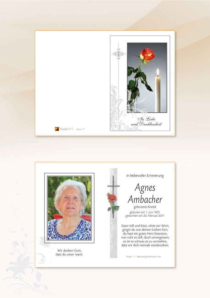 Schenke Gott ihr Ruh´ und Frieden aufrichtige Anteilnahme (KRANKENHAUS BETTNACHBAR) Frau Herta Schweisgut und Tochter Angelika