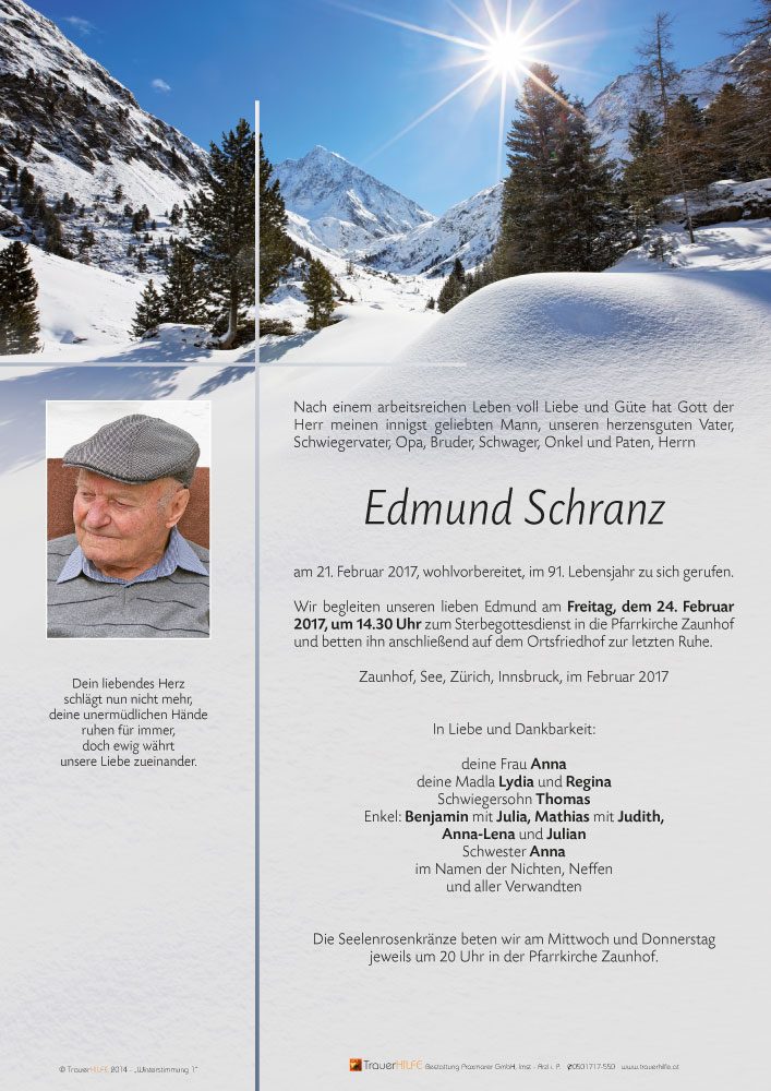 HERZLICHSTES BEILEID; von mir und meiner Familie!! Wir sind in Gedanken in dieser schweren Zeit bei EUCH! Ich habe den Edmund von klein auf gekannt, und umso mehr schmerzt es mich zu tiefst, dass ich Ihn nie mehr sehen werde! Edmund wird immer in meinem Herzen sein, ich habe ihn sehr gern gehabt!! RUHE IN FRIEDEN LIEBER EDMUND!! DU FEHLST UNS ALLEN!! Hansl aus Kufstein26.04.2017 07:50 - johann hromadka