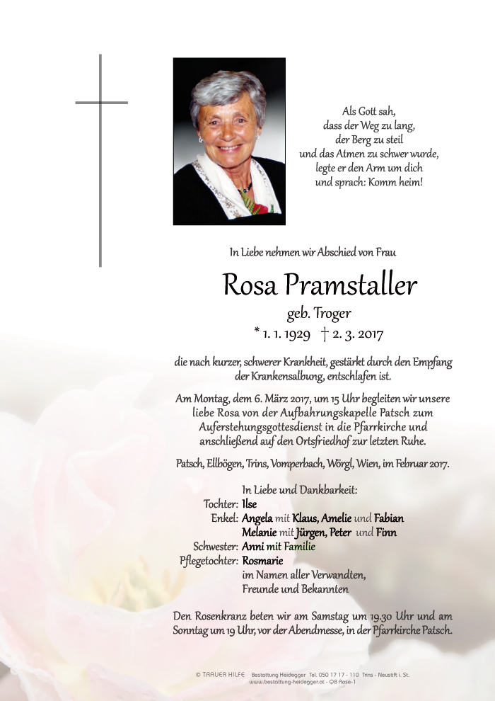 Friedhof Patsch, † 02.03.2017 (88 Jahre)