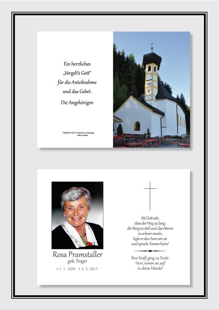 Bestattung wurde durchgeführt von: Karl Neurauter Karl Neurauter Bestattung Heidegger Brennerstraße 69 6150 - Steinach am Brenner Tel.: 05275 5211 zum Bestatter
