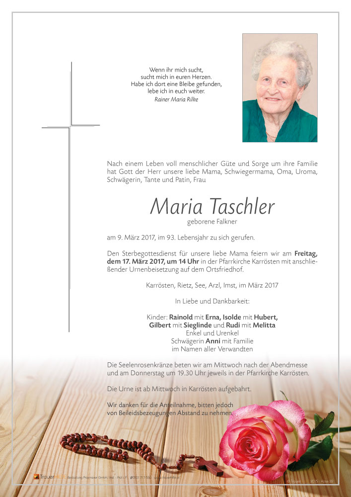 Wir möchten euch auch auf diesem Weg unser herzlichstes Beileid ausdrücken. Maria ist nun ihre letzte Reise angetreten und wir wünschen Ihr alles Gute.