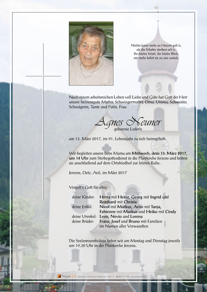 Wir werden Eure Mutter, Schwiegermutter und Oma stets in guter Erinnerung behalten.