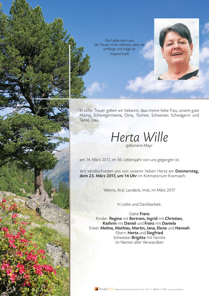 Liebe Ingrid,Regina, lieber Franz und Trauerfamilie Wille!