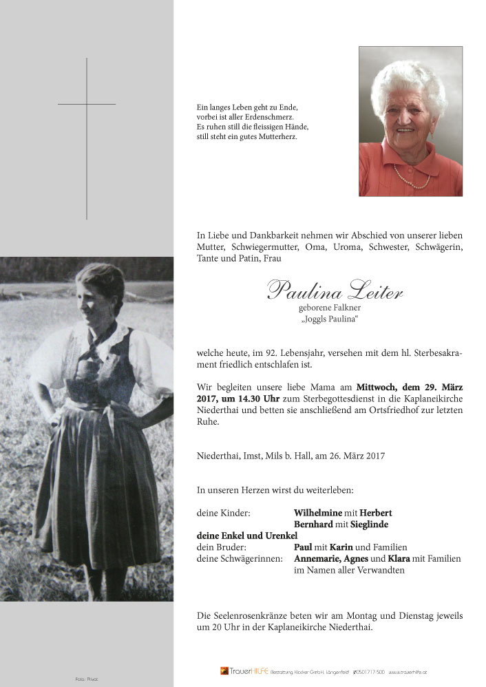 Meine herzliche Anteilnahme zum Heimgang an eurer Mama Paulina!