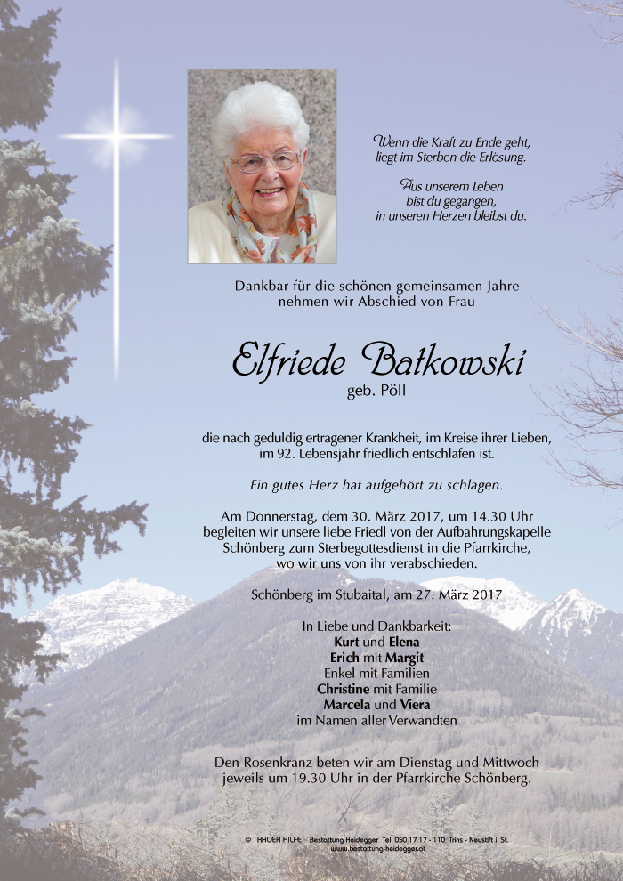 Friedhof Schönberg im Stubaital, † 27.03.2017 (91 Jahre)