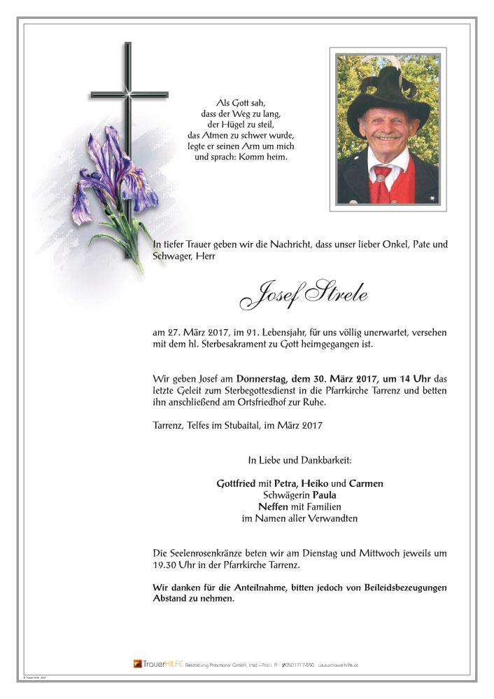 Ruhe sanft in Gottes Hand, moch`s guat und guate Reise ! Pfiati Josef28.03.2017 22:04 - Ewald&Mary Huber