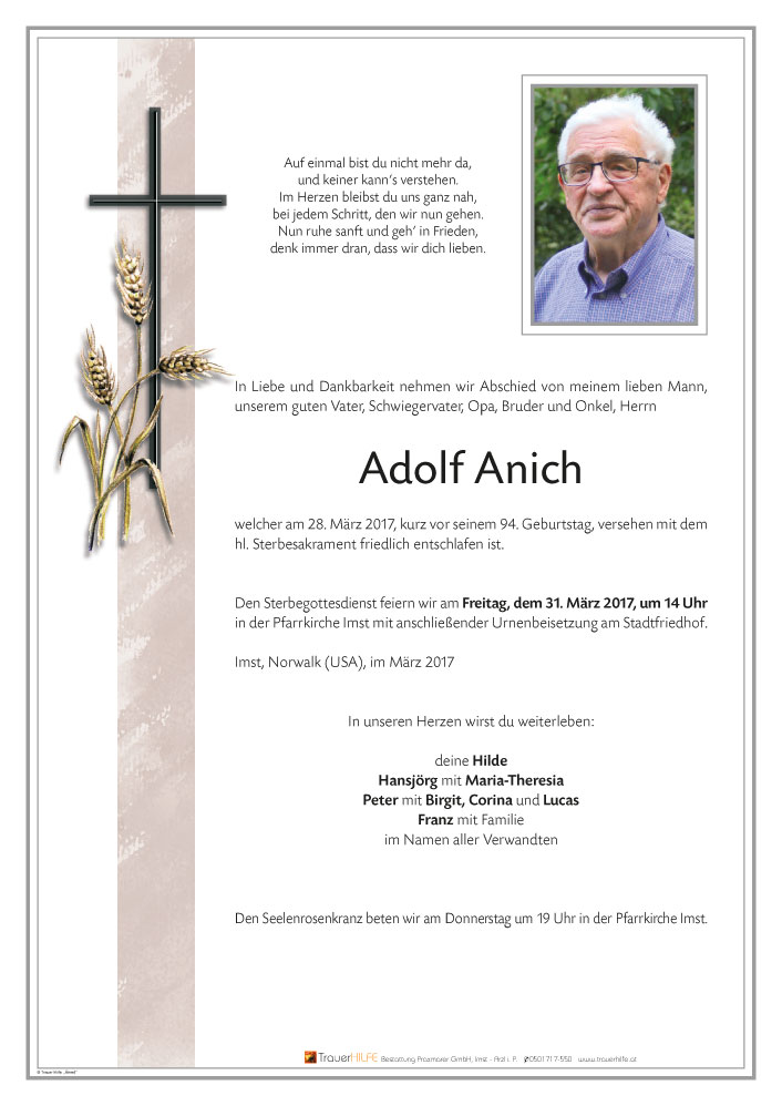 Friedhof Imst, † 28.03.2017 (93 Jahre)