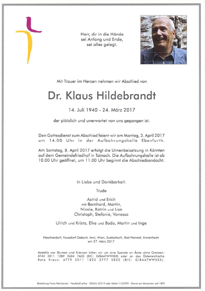 für die Tage der Trauer wünsche ich dir und deiner Familie viel Kraft. Ich habe deinen Vater als feinen und liebenswürdigen Menschen in Erinnerung.