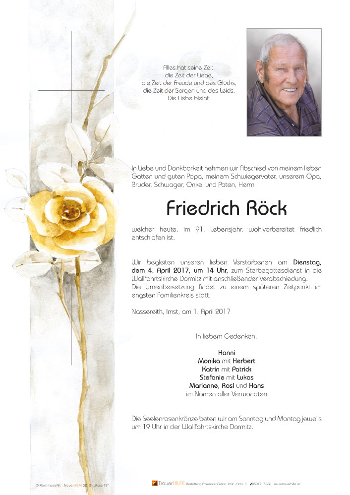 Unser aufrichtiges Beileid Daniela, Jürgen, Patrick und Marcel01.04.2017 16:00 - Familie Walch