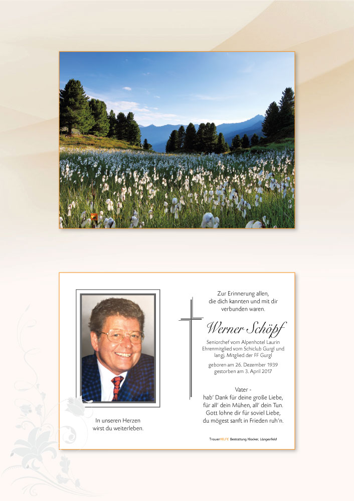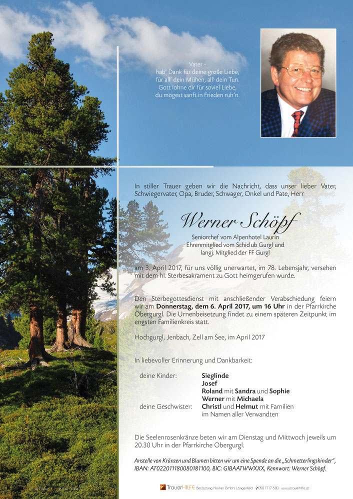 Auf diesem Wege möchte ich den trauernden Hinterbliebenen mein aufrichtiges Beileid für den Verlust des Vaters, des Werner, meines Ex-Chef zum Ausdruck bringen.