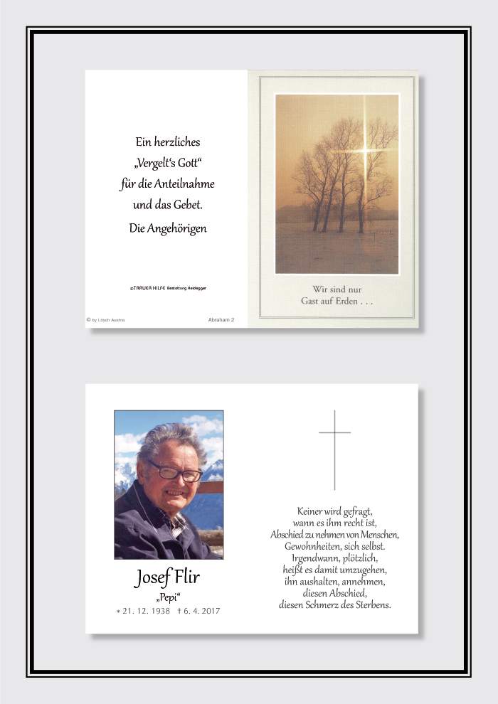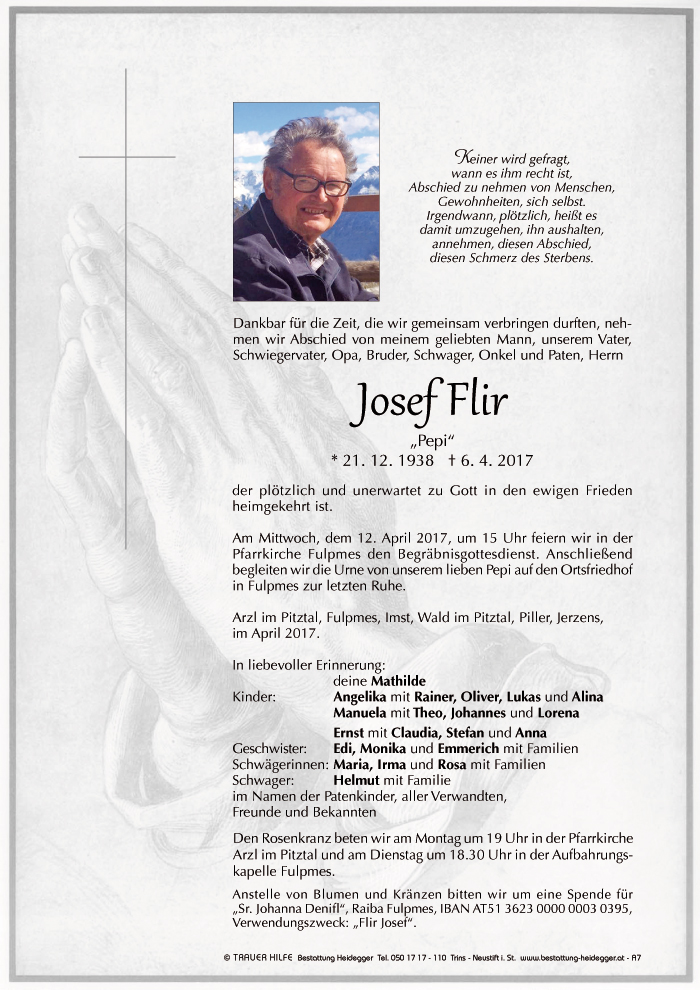 Neue Kerze für Josef Flir entzünden.