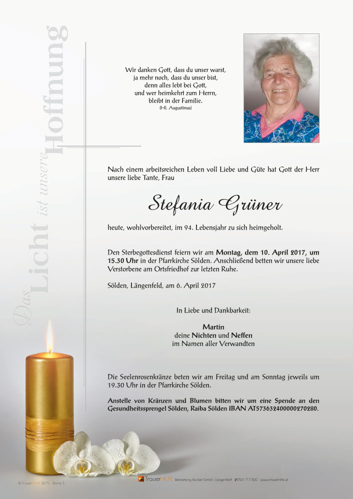 Ietz bist du hoam gongen Fanele, i wear dei nette und liebe Art nie vergessen.