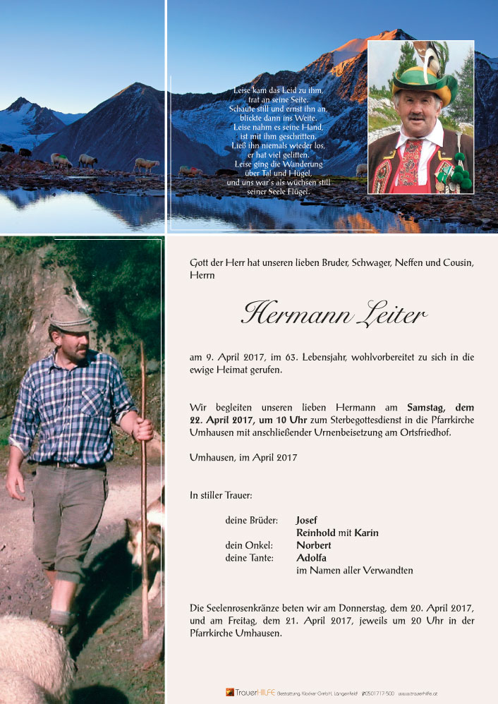 Ruhe in Frieden Hermann und i werd sicher an die denken, wenn wieder die zeit kimmt, die schofe vom barg ze holn!