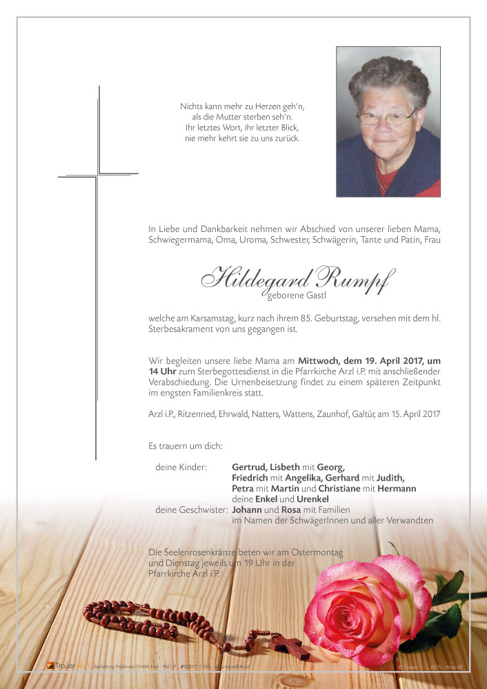 Aufrichtige Anteilnahme zum Heimgang von Hilda. Viel Kraft und Zusammenhalt in dieser schweren Zeit.