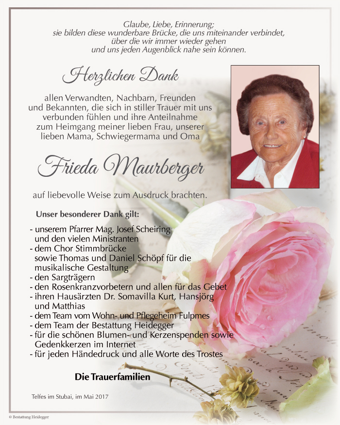 Bestattung wurde durchgeführt von: Karl Neurauter Karl Neurauter Bestattung Heidegger Brennerstraße 69 6150 - Steinach am Brenner Tel.: 05275 5211 zum Bestatter