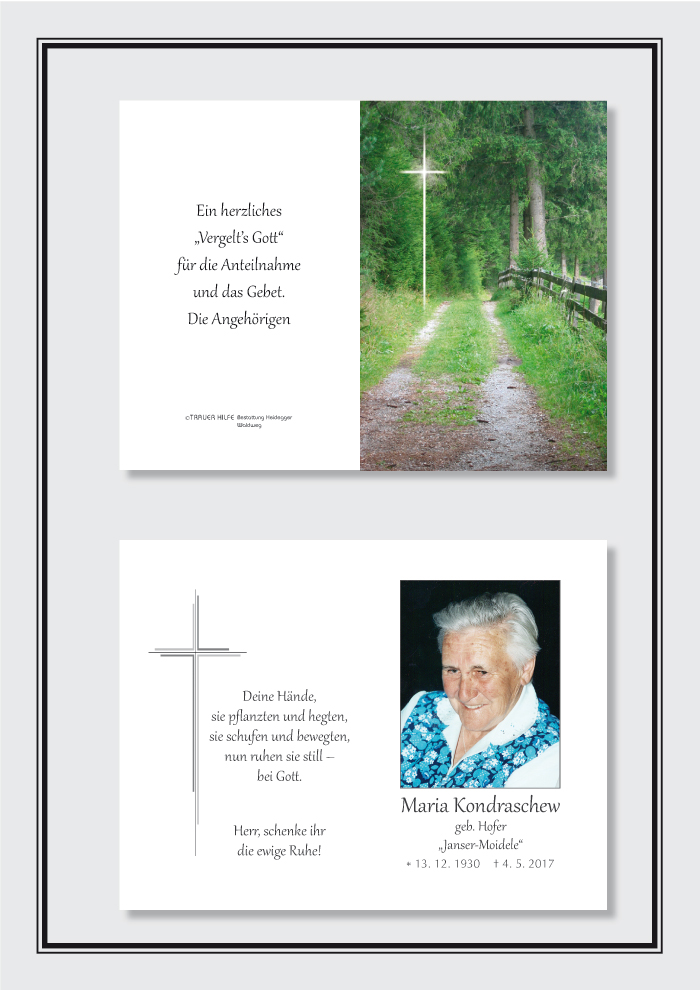 Bestattung wurde durchgeführt von: Karl Neurauter Karl Neurauter Bestattung Heidegger Brennerstraße 69 6150 - Steinach am Brenner Tel.: 05275 5211 zum Bestatter