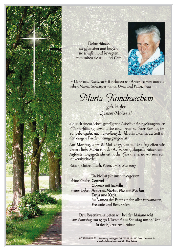 Friedhof Patsch, † 04.05.2017 (86 Jahre)
