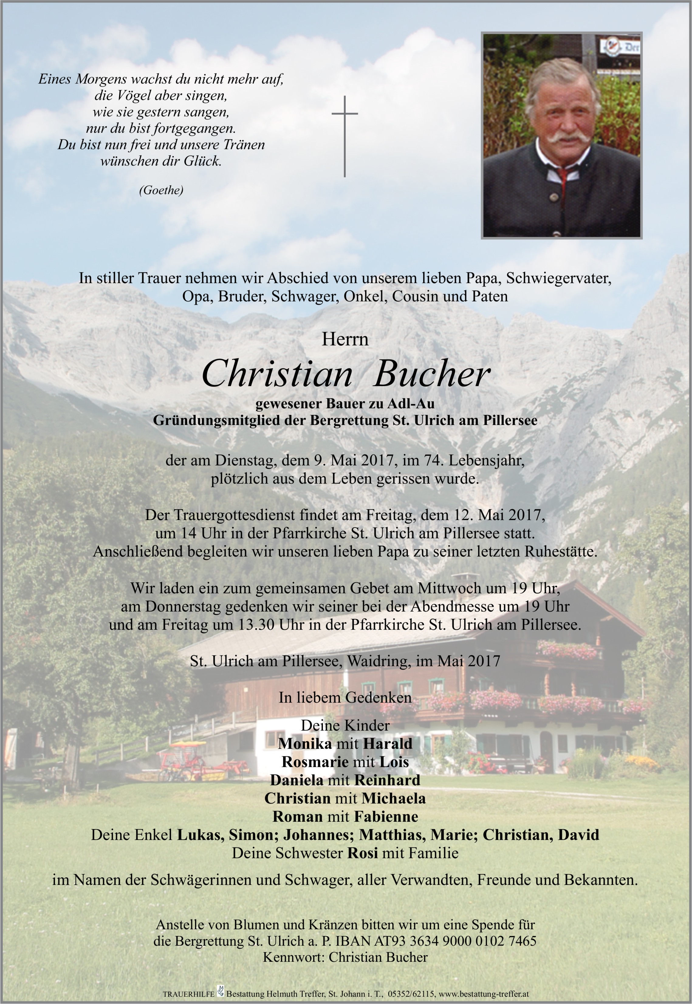 mit Dir Christian haben wir einen guten Freund und Nachbarn verloren.