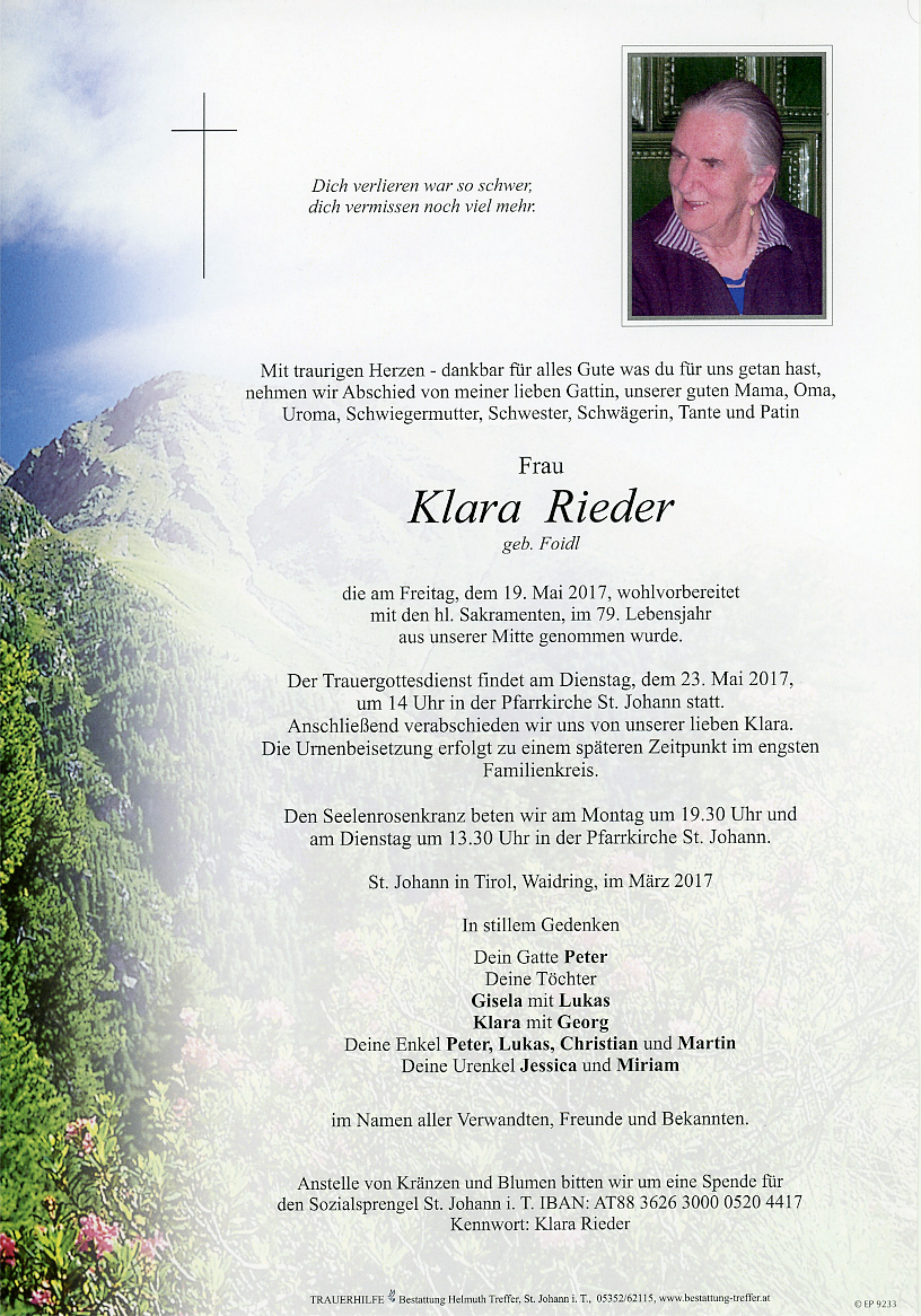 Nie werden wir Klara\'s unverwechslechbaren Lacher und ihre Herzlichkeit vergessen.