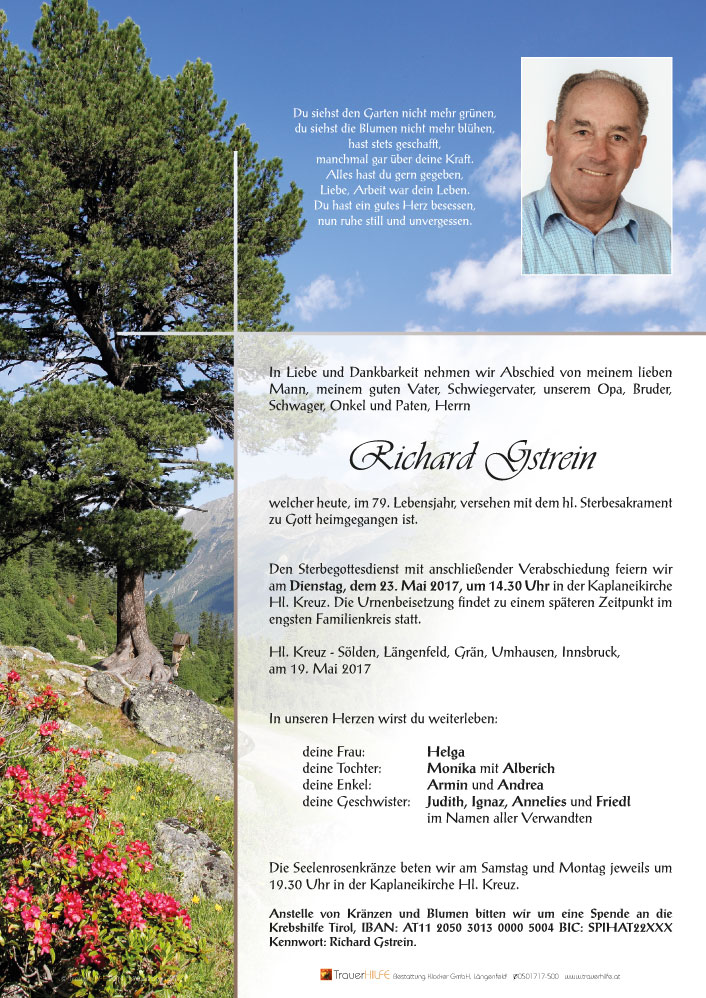 Neue Kerze für Richard Gstrein entzünden.