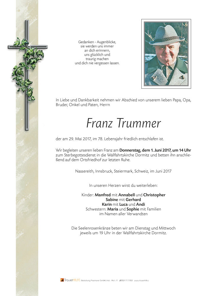 Friedhof Dormitz - Nassereith, † 29.05.2017 (77 Jahre)