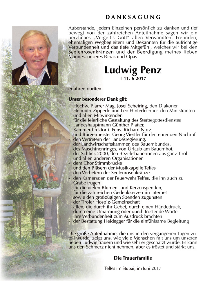 Ich kannte Herrn Ludwig Penz nur von der Bauernzeitung aus. Am 21. Mai war ich in der Hl. Messe in Telfes und habe ihn und auch seine Gattin gesehen. Es war mir eine Ehre.